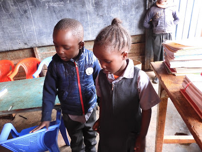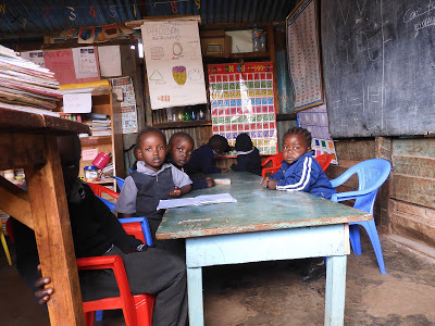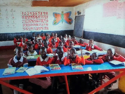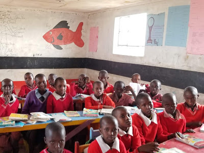 You may notice that each grade has fewer and fewer supplies, until the nursery class has nothing but rocks to sit on. But look at how many children there are in that classroom?