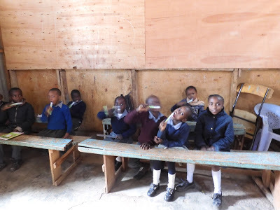 We went from one classroom to the next, introducing ourselves, handing out the toothbrushes and giving our spiel.