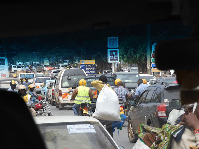 Here’s my random picture for the day. That’s artificial grass on the dashboard of the matatu we took in the morning. Interesting, huh?