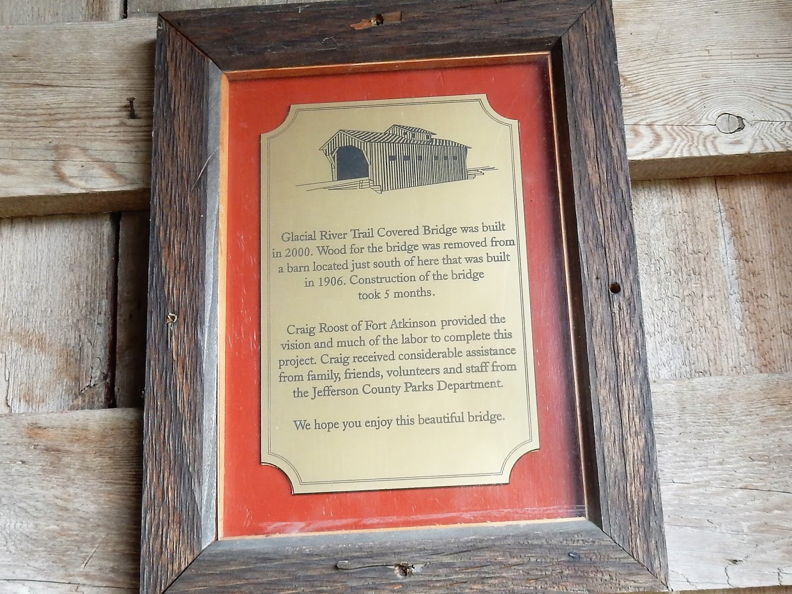 Find it: The bridge is south of Fort Atkinson on the west side of Highway 26, north of County Line Road. Find parking for the trail at County Line Road and Old Highway 26. From there, it’s a half-mile walk or ride north to the bridge. (From https://www.jsonline.com/story/travel/wisconsin/day-out/2018/11/08/covered-bridges-wisconsin/1893951002/)