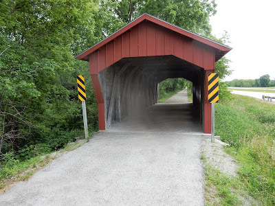 This red covered bridge is part of the Glacial River Trail, a 39-mile on- and off-road bike trail between Watertown and Janesville (it connects with the Glacial Drumlin State Trail north of Jefferson).