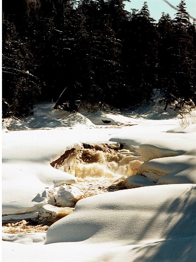 “Think you can call in sick tomorrow?” “Of course.” I rarely called in sick because I was feeling ill. I would use some lame excuse, migraine seemed to usually work, but I think my manager realized what I was really doing those rare days I didn’t make it to work. “What’s up?” “I’m feeling pretty good tonight and I think it’s time we took a ride.” “It’s the middle of winter.” “So.” I picked her up early the next morning and we headed up north to some of our favorite waterfalls. What would they look like in the winter, would they be frozen or too buried in snow to be seen? Our first stop was the county park on the Turtle Flowage, where we had camped with Judy the summer before. The flowage was covered in snow and ice thick enough to hold not only the two of us, but four-wheel drives and ice shacks. We struggled through the snow, me leading the way, cutting what path I could to make it easier for Pat to get through. We thought we were getting close to the falls but stopped when we heard the sound of rushing water. The water of the meager falls still had enough power to force through the snow. Hmm? we thought as we stood panting a mere foot from the open water, and then we wisely tromped back to solid ground.The falls at Black River Harbor were more of the same, except that our trek through the snow was much longer and followed a rabbit path instead of the boardwalk which led tourists to this spot in the summer. We were pretty much alone, not even any rabbits out that day. We continued our drive and came out on Lake Superior. Up until that point the air outside felt like the chill of any other winter day. The sun was shining, and it felt warm when we turned our faces to it. But we had been raised on Wisconsin winters and as long as the thermometer stayed above zero Fahrenheit, we were comfortable. When we got to Lake Superior, however, it was as if all life had stopped. It wasn't just the cold and it wasn't even the wind because there was none. The air was still; there was no movement in the sky or the ground around us. No birds were flying and there was no noise whatsoever. It was like walking into a vacuum. I thought that Gitche Gumee was powerful in the summer, when the waves crash on the shore, unrelenting in their actions. The power to just withdraw heat, movement, the very air above was a power I could barely fathom. The Lake was covered in snow, with drifts like waves upon the beach, and as far as you could see it was one solid whiteness, the sky blending into the horizon. It reminded me of a lunar landscape. "Wow," Pat said, "not quite what I expected." "I know. It’s like being on another planet. It’s beyond cold.” I wondered, though, if that was what the cancer felt like to her or the chemo running through her veins. Both sucking away at her life. We took our pictures and fled back to the SUV. Then drove to a restaurant in Bessemer for hot chocolate.