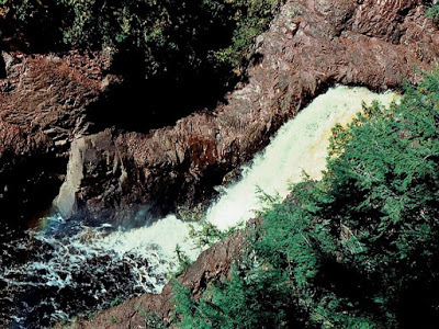 1996 In June of 1996, Pat was feeling well enough that she decided it was time we went on another camping trip and that we should take our older sister Judy along. The first night we stayed just outside of Mercer at Lake of Falls, a small county park along the Turtle Flambeau Flowage. Pat and Judy went up in the middle of the afternoon to set up camp, and I joined them after work. They had found a site on a small peninsula, almost like being on an island. It was a gorgeous spot. The next day we packed up camp and set off to find more waterfalls. Our first goal was Spring Camp Falls. The Wisconsin Gazetteer showed a little red line, Camp 7 Road, heading west off of Highway 51. It connected to East Branch Road, which led right to Spring Camp Falls. Camp 7 Road began as any other gravel road through the woods. But it quickly deteriorated. The track went straight through a swamp, so when the road was first laid it was a corduroy road, a road made by laying logs across the roadway, especially over wet, lowland terrain. The idea was that the road was dry, but it was also incredibly rough, and the roughness only got worse over time.In 1996, this particular road was simply heinous. By the time the logs were coming up under Pat’s Blazer, the lane had become a path, barely wide enough to fit through, branches hanging in front of us and tree trunks encroaching on both sides. Judy and I got out and started walking the track in order to help Pat drive through. We continually stopped to access the situation, but since it was obvious we couldn’t turn around and backing up was out of the question, we kept slowing crawling forward. We checked the cell phones. Surprisingly we still had coverage.“And if we called for someone to get us out of here, how exactly do you think they would do that?” Pat asked logically. She had a point. And we were at a point of no return.Finally the road, not even an ATV trail by this time, approached a slight incline, at the top of which was dry land and a grassy opening big enough to turn around. Now the question was, do we turn around?We knew what we had just slogged through, but was it better or worse up ahead? As tired and frustrated as we were, I thought we should leave the Blazer and at least walk the road for a little ways to see if it improved. Pat hated to be pessimistic, but she feared that the trail would get worse, or even suddenly dead end and then we couldn’t even turn around. Judy simply shrugged. We turned around and worked our way out of the swamp. Years later, I would find that waterfalls via another route. But someday, as God is my witness, I will get there along Camp 7 Road.