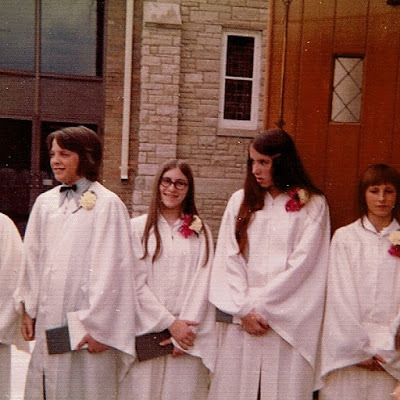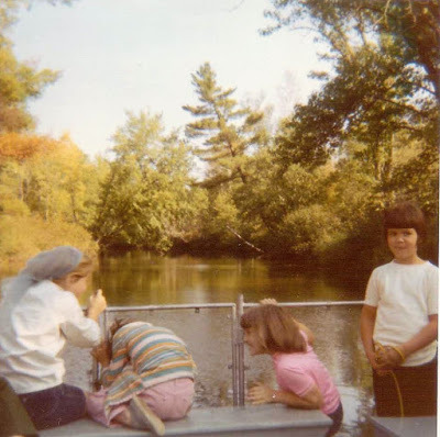 So that's me in the striped jacket with my hair stuck in the gate of the pontoon boat. Pat seems to be just laughing at me, while our friend Nancy looks like she's trying to help. That's a distant cousin on the right, looking totally innocent. I guess that's why Pat got to have long hair and Mom always cut my short.