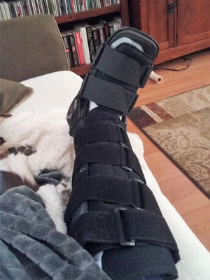 I’m back in the boot which I wore for six weeks last year due to a painful bone spur on my left heel. This time, however, I’m supposed to be non-weight bearing on the injured foot.
