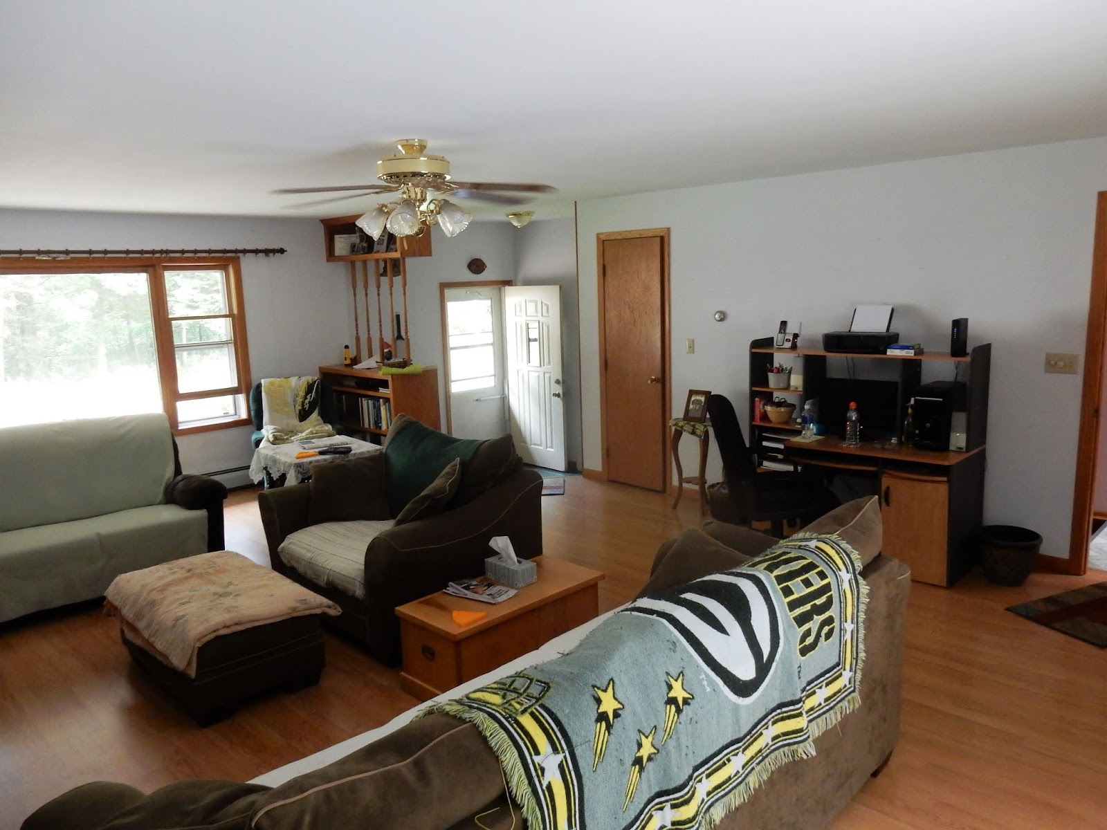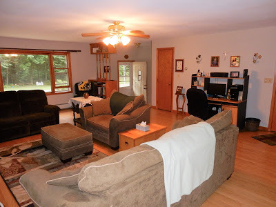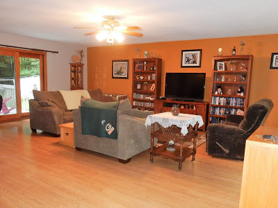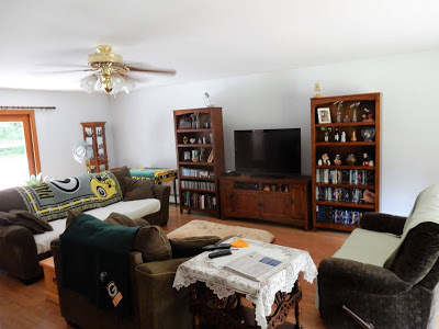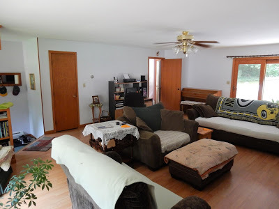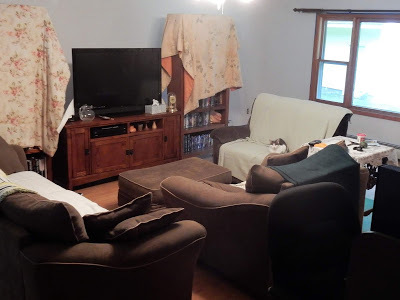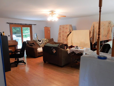 Before we painted the ceiling – ok, before Hubby painted the ceiling, we got most of the furniture ready for an early Halloween. Looks like the ghosts of furniture present.