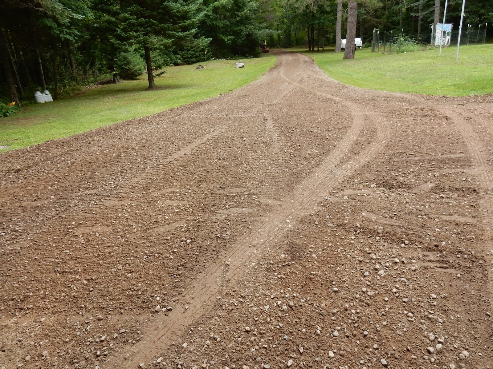 We'd been trying to get the driveway graveled and graded for two years. Two days before the wedding, I come home to this. Nice to get it done, but, Hubby, did you have to cut it that close?