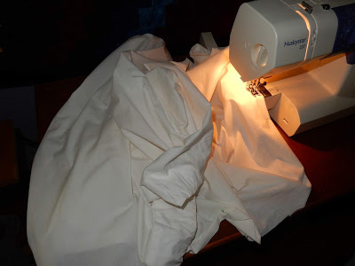 I really don't want to talk about this one. Two weeks before the wedding, I thought I would wash the kitchen curtains to freshen them up. Well, they've been hanging in my kitchen since shortly after I moved here, 28 years ago. Yes, they've been washed a few times already. Apparently, many times, as one of the seams ripped apart in the wash this time. No problem, coz, of course, I have time to do extra sewing!