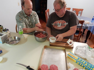 The night before, the two brothers of the groom shaped the hamburgers to be grilled in the morning.