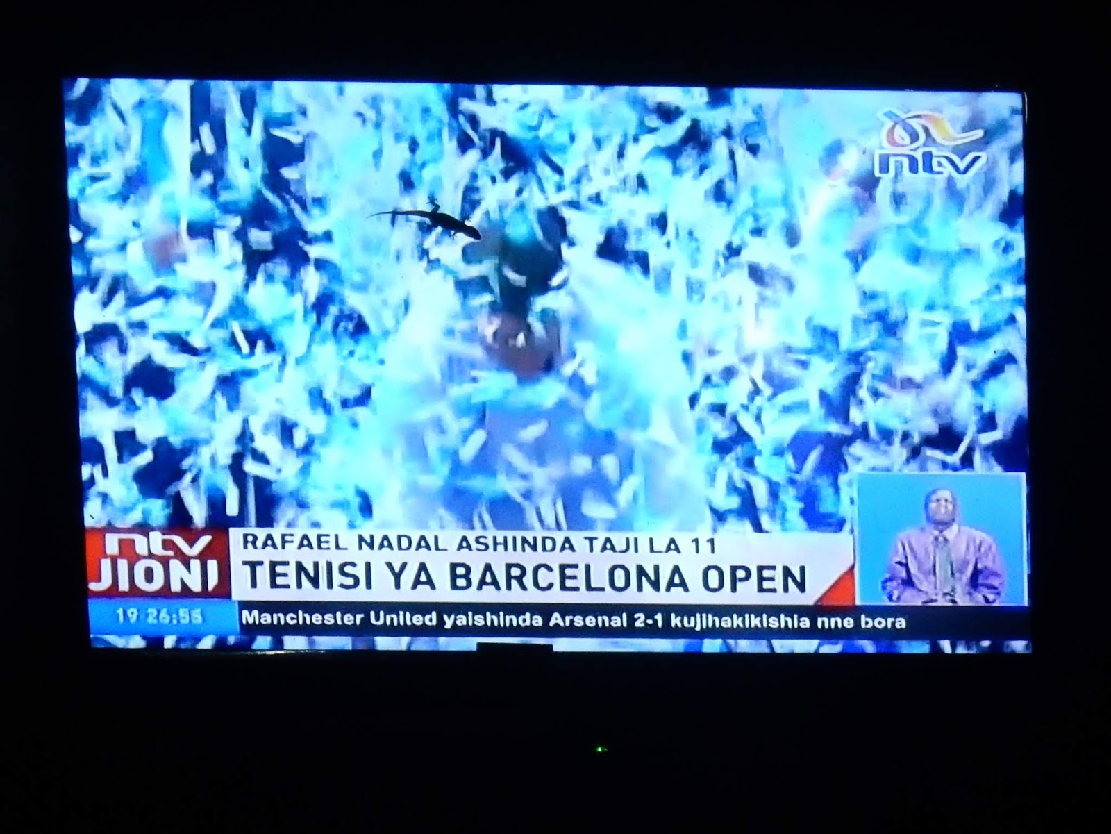 At night, in the dining hall of the camp, a gecko resides on the TV screen. He basks in the warmth of the screen and feasts on the insects which are attracted to the light