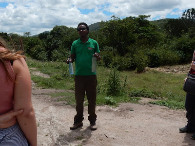 Izzo, the founder of Marafiki, holds up a bottle of clean water and one from the river. Again, because it is the rainy season, more water has been flowing through the river so it doesn’t look too bad here. During the dry season, though the river doesn’t dry up, the water in it looks more like mud.