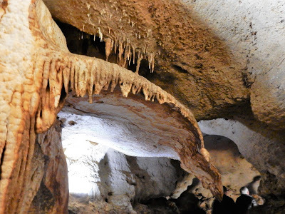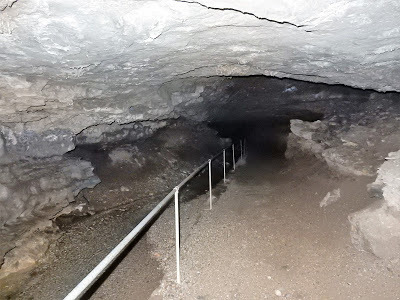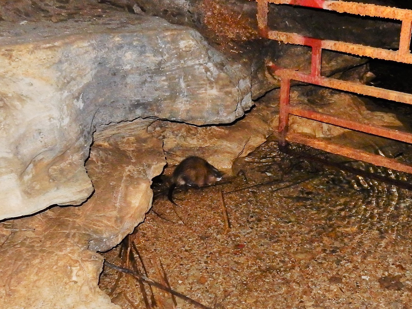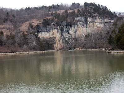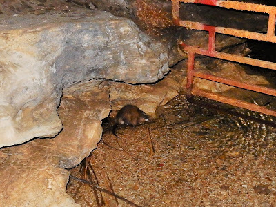 Got to Ozark Cavern, aware that it was closed until April, but the ranger at the visitor center said we could walk out to it and go in as far as the gate. She warned us about a beaver that was living there. We thought, cool, but we will never see it.