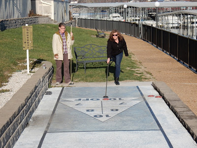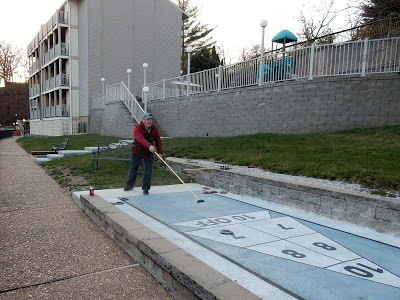 We drove back to the resort and walked around until the kids got back. Then we went down and played a few family games of shuffleboard. How sweet, huh? What a happy family.