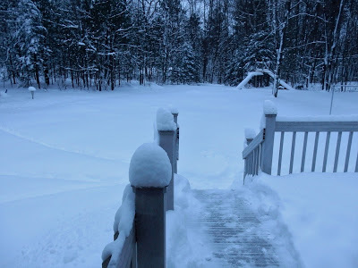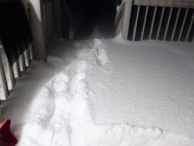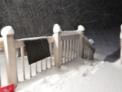 It’s tough to get decent pictures in the dark in a snowstorm. But here is our deck in the backyard during the snow.