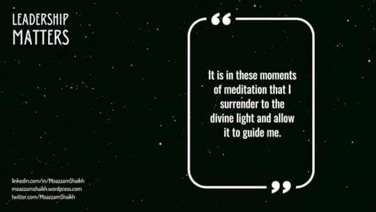 In the midst of the chaos and demands of leadership, I understand the importance of taking a moment to retreat to a quiet place and connect with something greater than myself. It is in these moments of meditation that I surrender to the divine light and allow it to guide me.