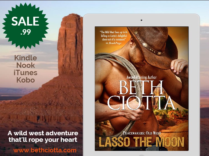 In hopes of building a bigger audience for my historical westerns, I'm running a sale on the e-book (digital) version of LASSO THE MOON, the first book in the series: Peacemakers: Old West. For a limited time only, this romantic adventure can be your for 0.99! Grab your copy now!