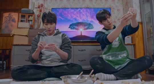 Few things in life have given me as much joy as watching Su-Ho (Cha Eun-Woo) and Seo-Jun (Hwang In-Yeop) battle it out not in the dojo or with fisticuffs, but over dumplings. If you just look at the broad strokes of their characters and actions, Su-Ho and Seo-Jun are very familiar and standard male leads. They have egos, they protect Ju-Gyeong, etc. But then come the details, like Su-Ho spending days learning how to knit and all the boys in Sae Bom High being avid knitters (which is reminiscent of the knitting club that the techie boys of Start Up had). Or Seo-Jun making big, bad Kim Cho-Rong’s heart flutter in the gym when Seo-Jun uses Cho-Rong as a stand-in for Ju-Gyeong. Or Su-Ho and Seo-Jun pulling out all the stops to establish who makes the best dumplings, in order to impress Ju-Gyeong and her family. It’s just so damn cute and it puts forward a distinctly unmacho masculine ideal. Reader, I’m here for it — for both the men and the dumplings they made.