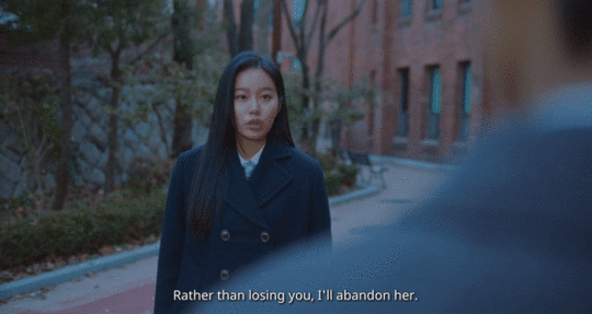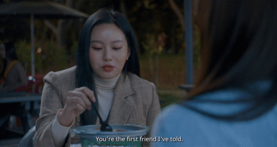 Su-Jin bumps into barefaced Ju-Gyeong and Ju-Gyeong tells her the whole backstory. Su-Jin is entirely lovely and supportive. It’s adorable how she literally holds Ju-Gyeong close to her heart to protect her.