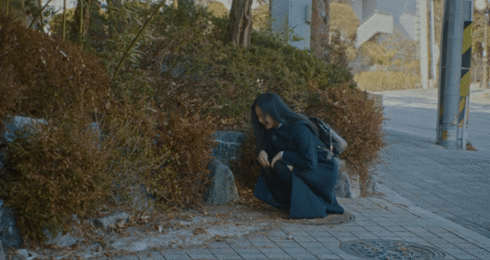 Su-Jin notices perv trying to take photos up Ju-Gyeong’s skirt. Not only calls him out, but when he hurries off the bus, she follows. Proper chase and at the end, she catches him. Later tells Ju-Gyeong she hadn’t noticed Ju-Gyeong on the bus until she noticed the perv — it’s like she’s got a radar for abusive men.