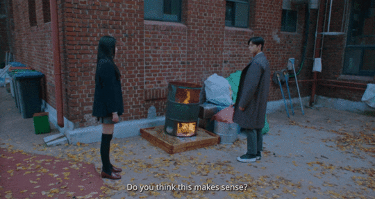Su-Jin self-sabotages and does relatively badly on a test. Her rank slips and a teacher gently points out that there is an obvious pattern to her mistakes. Su-Jin seems to have gone deliberately haywire after completing half the test perfectly — it’s like a foreshadowing of what her character does on the show too. Rather than respond to the teacher’s concern, Su-Jin runs away. She bumps into Su-Ho on the way out of the staff room and he notices she’s disturbed.