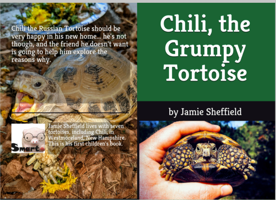 It turned out that the story about Chili was first and foremost in my mind, and was apparently ready to come out. I did the artwork using a cool painting app and a few dozen of my photos of Chili and a few of the other tortoises that I live with, and ended up producing a nice little story, with a nice little message, that turned out to be a nice little book (if I do say so myself).