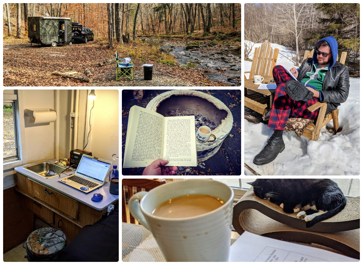 One of the things that's helped to keep me writing during Covid has been a series of mini writing retreats. I've done some solo-retreats in my mobile writing cabin, a small trailer that I drag around to pretty spots to write while basking in nature's green glow. A few times, I bubbled in with a friend from my MFA program and we spent a few nights writing and reading and sharing new stuff with each other at an AirBnB somewhere. A third way that I've been taking advantage of is by being a trusted housesitter, which basically means that I stay in someone's house and take care of their animals while they're away. All three of these flavors of writing retreat give me the chance to recharge my creative batteries and get some solid writing done.