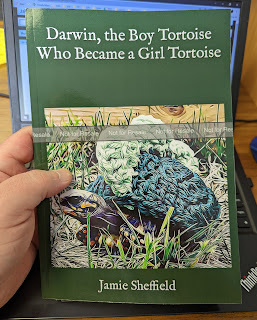 Until then, my plan was to noodle around with various side-projects: a collection or two of refurbished and expanded shorts and novellas, a website to help people on a semi-guided MFA-like experience, a serial for the new Kindle Vella program, a couple of articles about tortoises for reptile magazines, writing a grant proposal for an educational program I'd like to design, and connecting with local bookstores and schools and libraries... in addition, I jokingly talked with my wife Gail about writing a Children's book about Chili, the male Russian Tortoise that I live with.