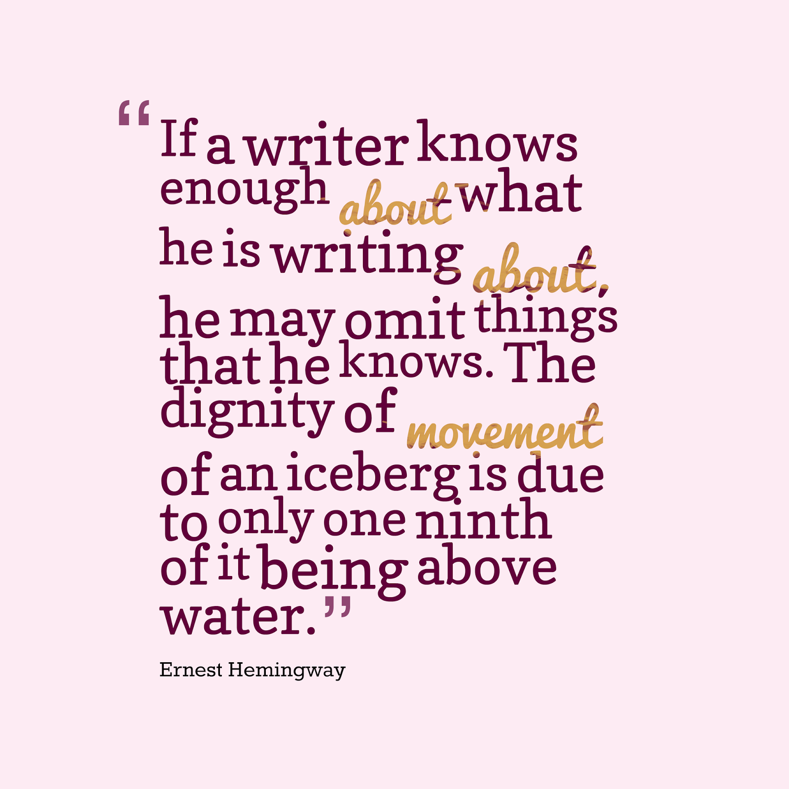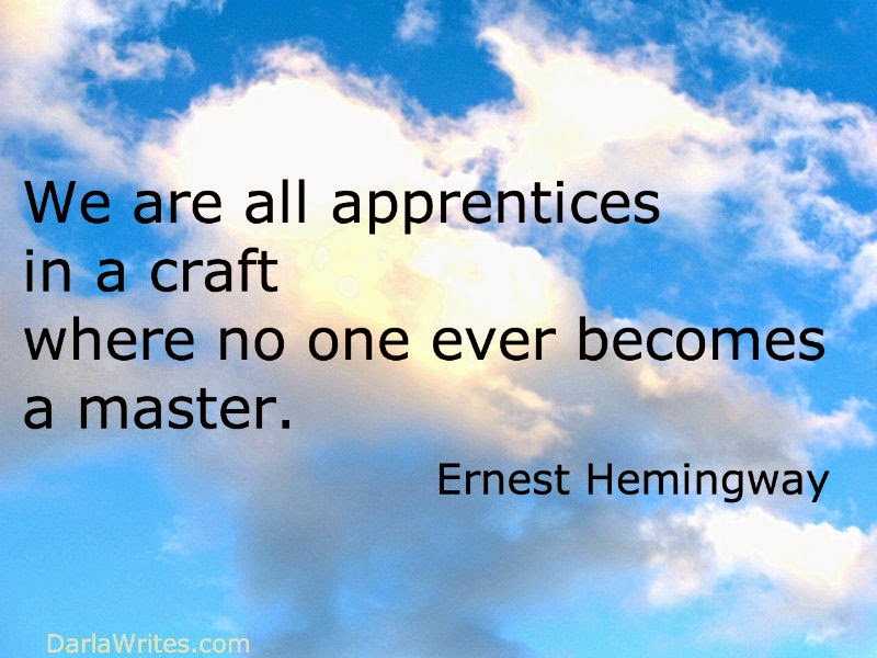 I came across this idea of Hemingway's one day, and fell in love with it instantly. I can feel my writing get better, stronger, faster, and more precise (to finally climb away from Steve Austin-ish language) with each day, each page, I write, but there's a freedom in knowing that there's no final stopping point when I'll be good enough ... I look forward to my writing improving until the day that I can no longer put pen to paper, or fingers to keyboard.