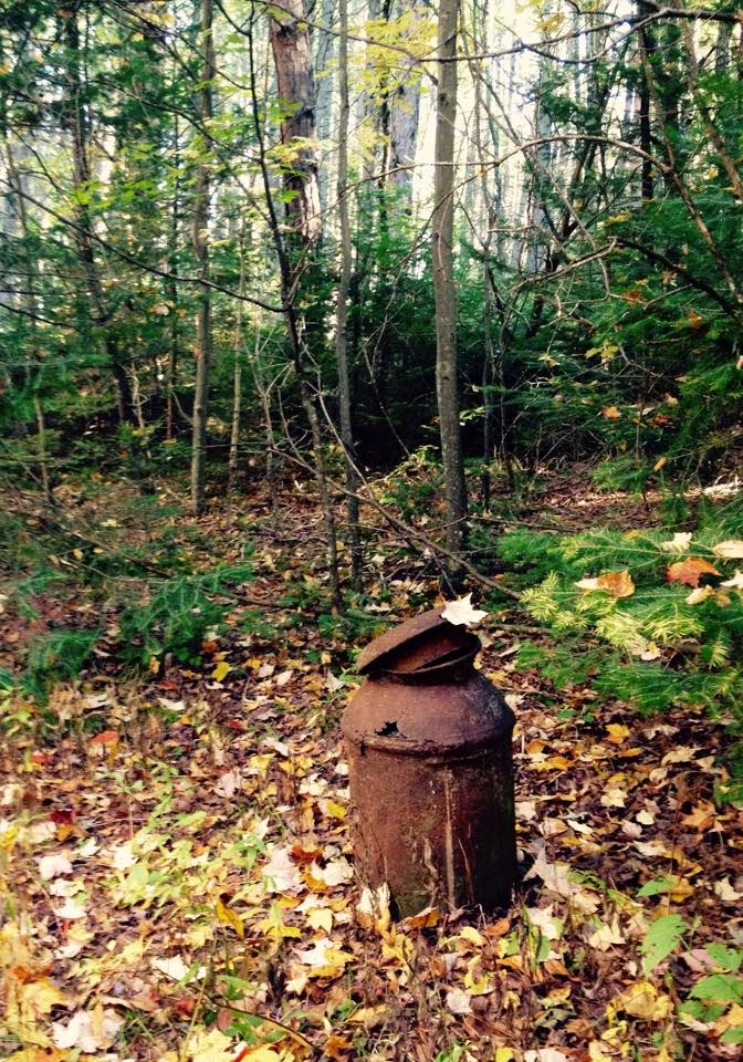 There were a number of signs of long-ago farming in and around the old orchard, this milk jug among them (also some strands of barbwire fencing grown inches into large trees, stone walls enclosing ancient pasture lands, and so on).