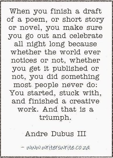 Writing is a hard and lonely and tiring and boring and stressful process, and if you're able to complete your writing projects, particularly again and again and again, you're doing something remarkable ... something that deserves celebration and notice. It took me years to comfortably accept this idea, and now that I've finally embraced this idea, I've been able to extend it to other things and people in my life ... finding reasons to celebrate peoples' unique and exciting achievements.
