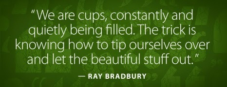 During the last few years of writing, I've found a couple of tricks that work for me to help 'tip myself over and let the beautiful stuff out' (as Ray Bradbury puts it). I noticed them working by accident, and while these particular ones may or may not work for you, if you pay attention over time, you'll learn the things that let you tip yourself over.
