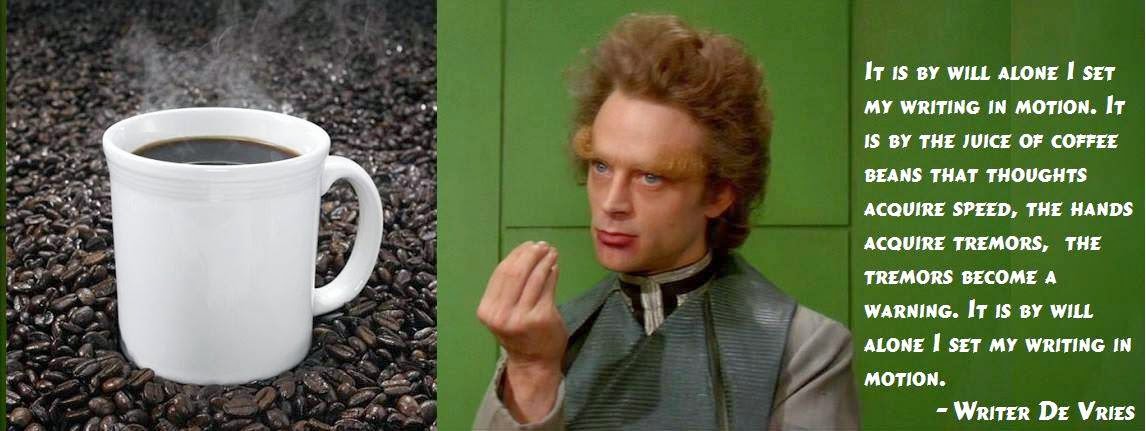 I won't kid you ... a lot of the writing and editing process is supported/enhanced/maintained by my intake of coffee. Finding the correct balance between sleeping and shaking can be a difficult process.