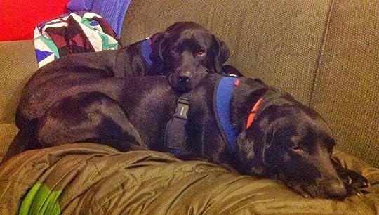 Having dogs is useful to me as a writer in a number of ways: they listen to my ideas without judging, a walk every once in a while is a great way (for all of us) to stretch and breathe, and watching them act/react/interact with themselves and the world around them is always interesting.