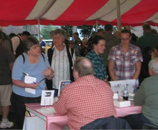 By the time things really got moving, the tent was packed with readers and writers, all talking about, and looking at, books...it was a blast talking with everyone there, and selling books to boot. I think there must have been 500 (or more) people in town last night for the event at Hoss's!