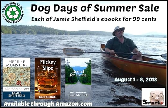 "Here Be Monsters", my first novel, is regularly available for $7.99, but during the first week of August you can get it for 99 cents, an 88% savings!