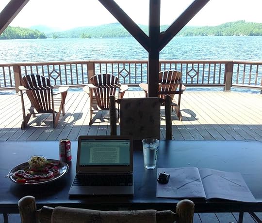 This is the view from the place I'm lucky enough to be writing for the next few weeksIt's an interesting process. I'm using a workbook that I created after my experiences last year, writing, "Here Be Monsters", which pulls together lots of lessons and exercises that I found in various books and websites, and in talking with authors. Assuming that everything goes well this summer, my plan is to polish the current version and go ahead and publish it in the hopes that other would-be writers will find it useful.