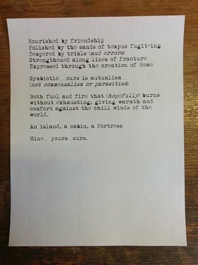 I heard back from her this morning, and she related that she is enjoying the book more, and noticing the particular device that had bothered her (in her case, the "/" backslash) less as she got further into the book. It made me ridiculously happy both to hear back from her (a reader in AUSTRALIA!) and to hear that was enjoying the book.