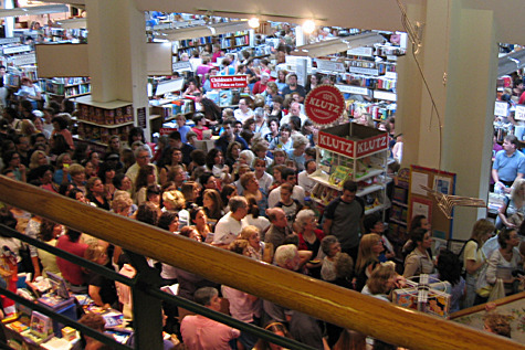 This is not what my book signing for "Here Be Monsters" was like yesterday. I signed and sold 7 copies of my book, and talked to maybe twice that many people about my book and/or writing.