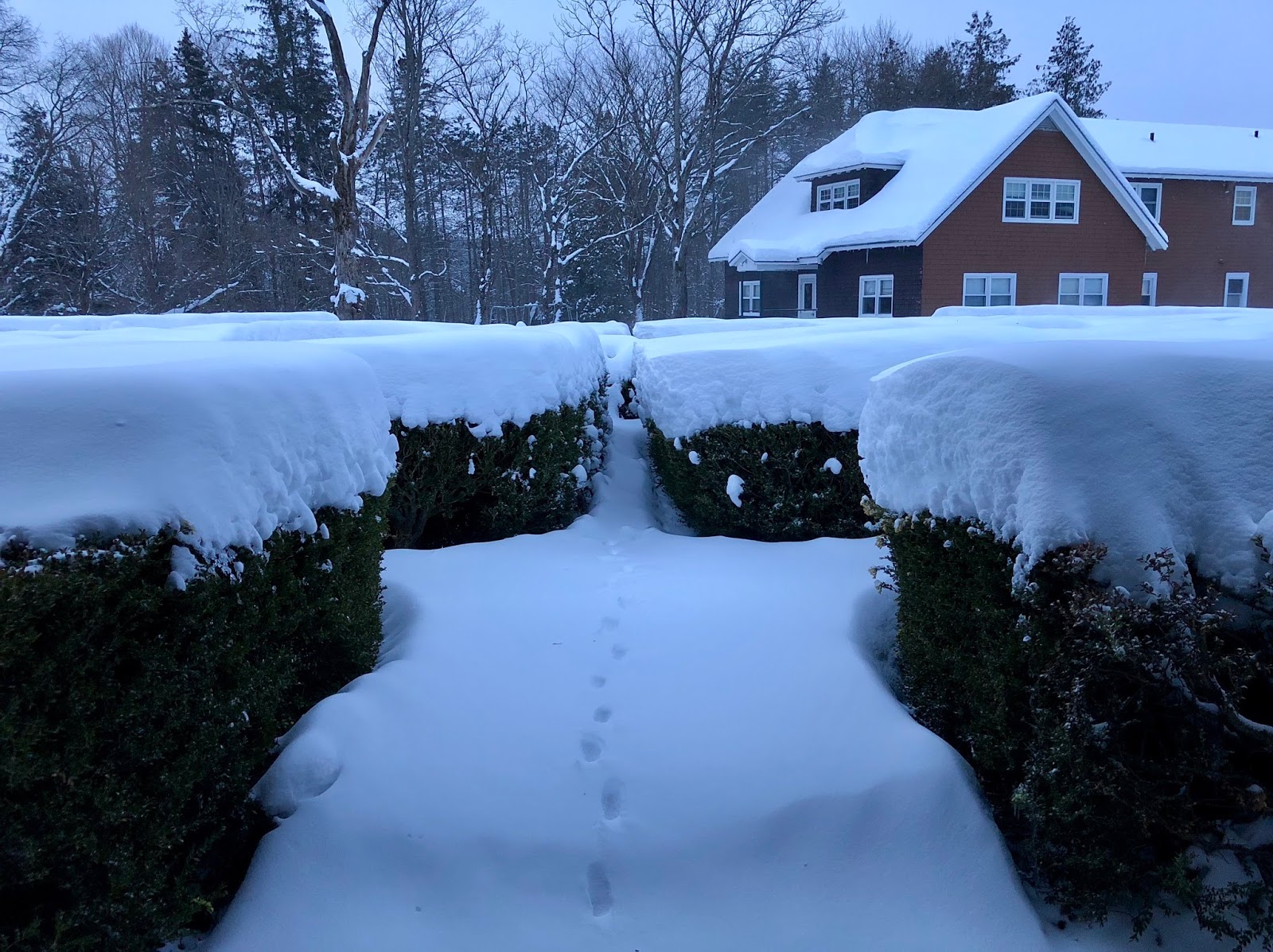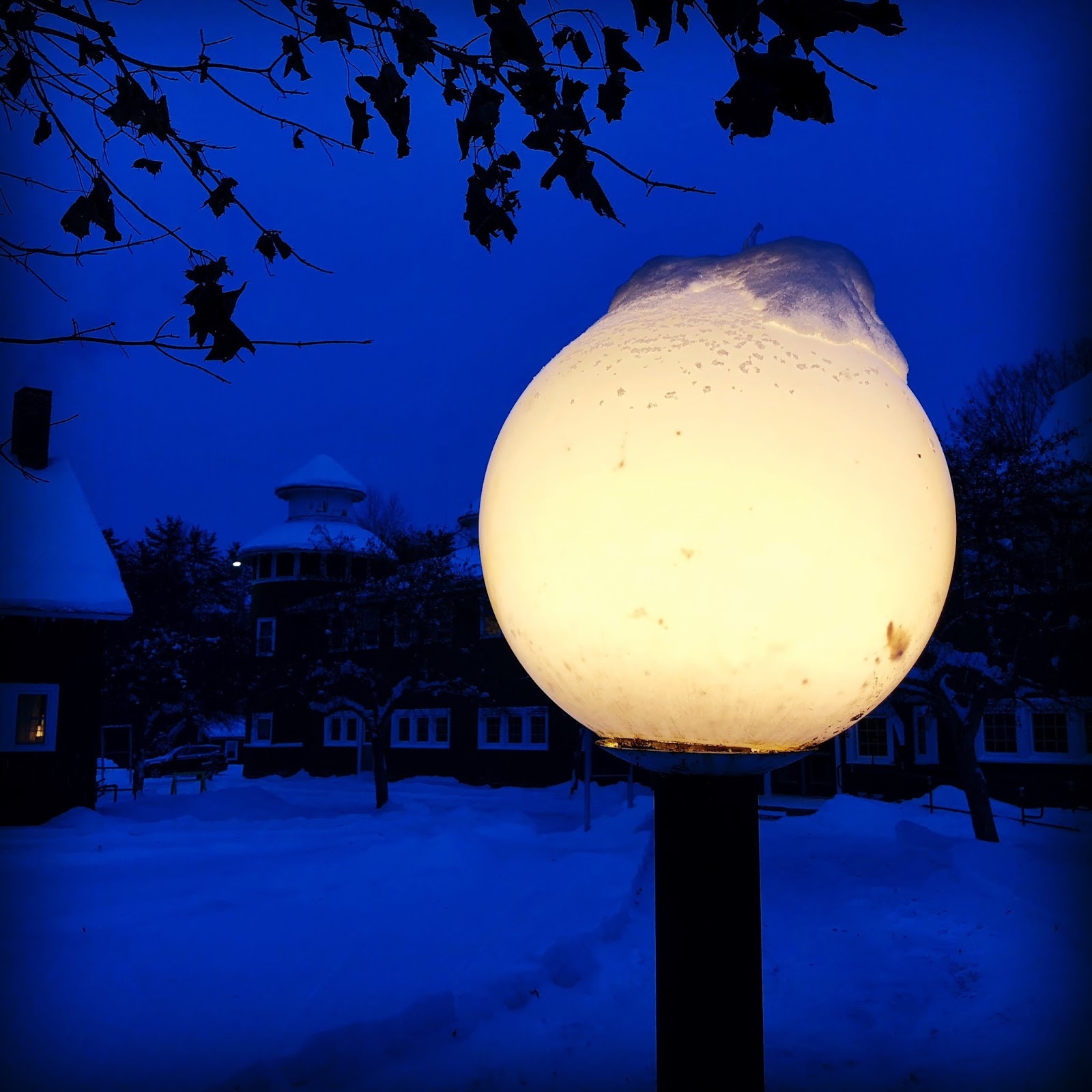 It was a frozen and snowglobe-y world up in Plainfield, between buildings and classes on Goddard's pretty campus, exhausting also; once I crunched down my driveway at home, I spent the majority of the MLK weekend couching with my wife and dogs (possibly with my dogs and wife, opinions vary).