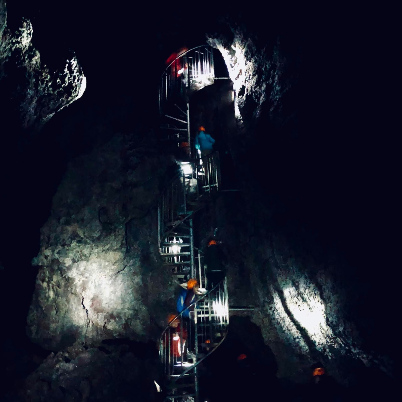 We explored the inside of a volcanic tube, venturing more than hundred feet, through cavern after cavern down and away from the light and warmth up above. When we had reached the deepest point of our journey, the guide with us asked everyone to turn off their lights and stand quietly in absolute darkness ... the first we'd seen since arriving, maybe ever.