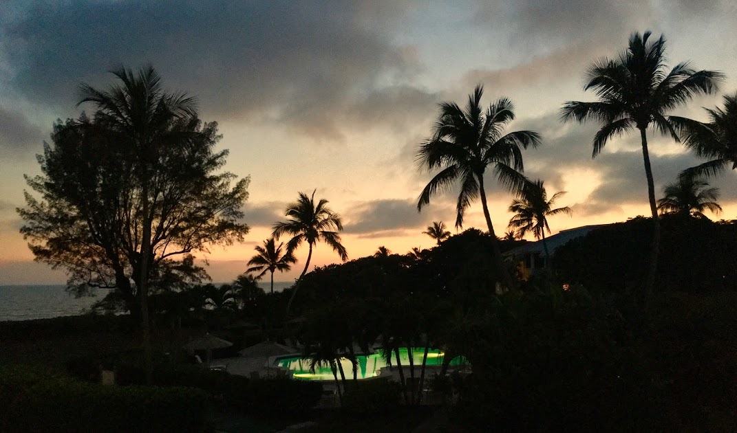 It was a wonderful first day, I got some good writing done (although not putting up the numbers I would have liked, in a perfect world), and I'm looking forward to the next couple of days of writing and swimming and possible alligator-baiting down here in paradise, before returning to my other paradise ... home with Gail and Puck and Miles.