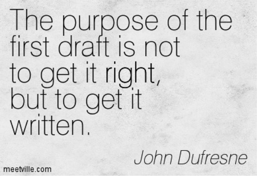 I have to remind myself every time that I'm just letting the story out of my head to play for the first time: that it doesn't need to be perfect, that I can fix it in later iterations, that the worst draft on paper is better than the best story living in my head.