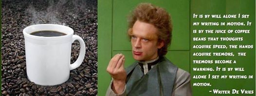 I'm a big fan of coffee from way back, long before I started writing books. I drink a fair amount of coffee every day while I'm writing, and believe it's a useful part of my process.