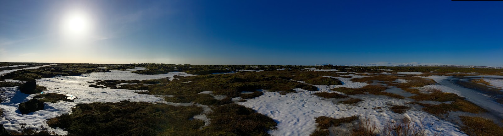 The question now was whether or not we should go forwards or back. I'll always regret not seeing Dettifoss, but it seemed the prudent thing to do, so we walked and jumped our way back to the car along and among nubs and spines of rock, climbed into the camper, and headed off for Lake Myvatn.