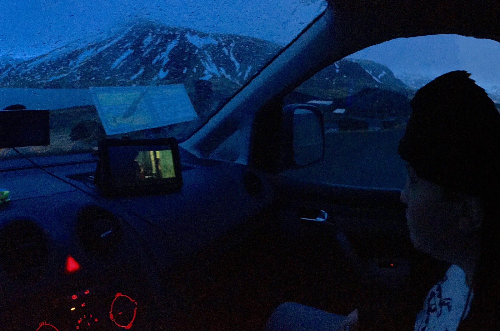 We stayed on the road one night until well after sunset, looking for the perfect spot to camp, and finally settled on a turnaround at a closed roadhead. It was frigidly cold, and there was a serious wind blowing that night, so we changed into our warm sleeping gear and set up the sleeping environment as quickly as possible before climbing back into the front seat to warm up for a few minutes ... and that's when Ben pointed out the northern lights coursing and pulsing overhead.