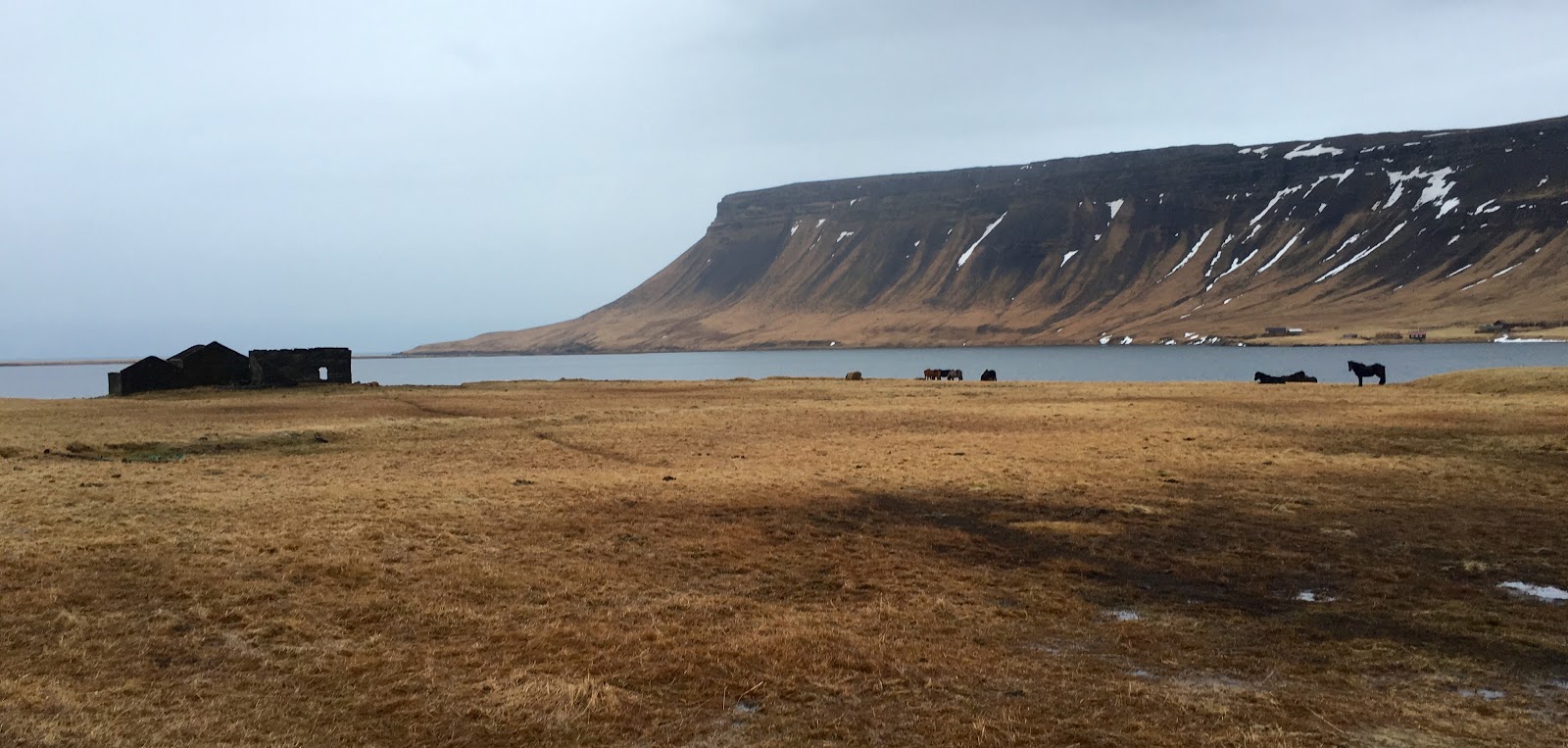These beautiful ruins, pretty horses, and sad fjord spoke to me as we were driving by, so we stopped to appreciate/experience it for a while before continuing on our journey.
