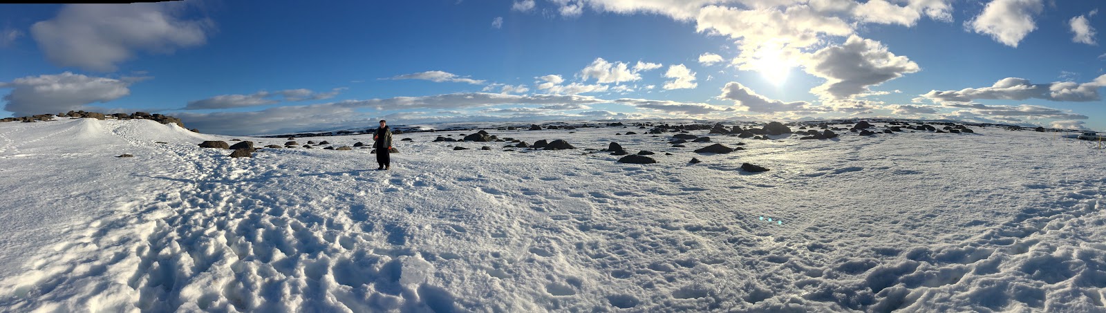 The next day, we drove the remaining 3km to Dettifoss, a truly remarkable waterfall which we never got to see. We started walking across the snow and ice and rock on a cold morning, feeling as though we were the only living beings on the planet.