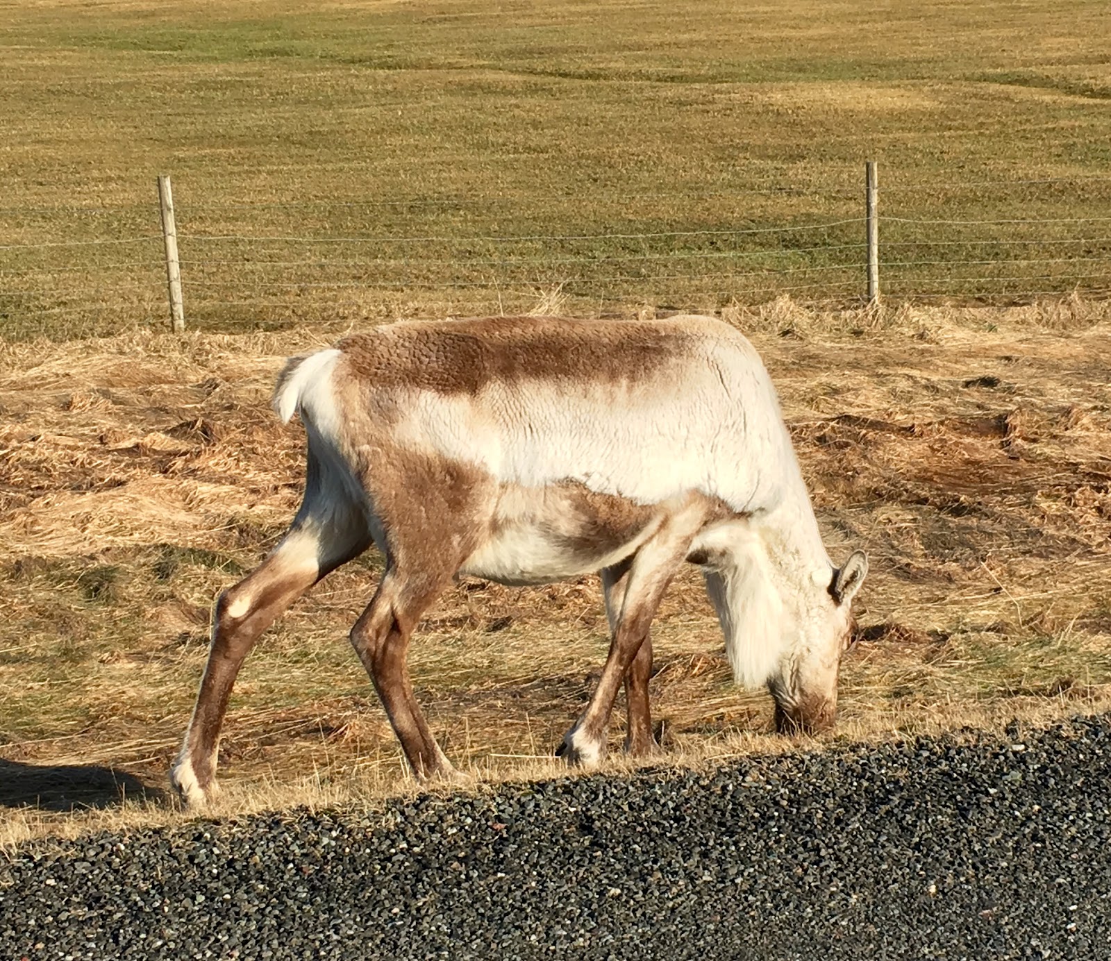 We stayed on the road for Hofn, and started to come across reindeer in ones and twos and eventually in herds in the dozens (hundreds?).