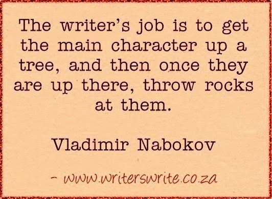 I like this quote, but think that Nabakov's metaphor extends beyond the main character to entire stories. We write stories and then put them up a tree and throw rocks at them with the help of our beta-readers and editors, trying to find the weak points and fix/strengthen them.
