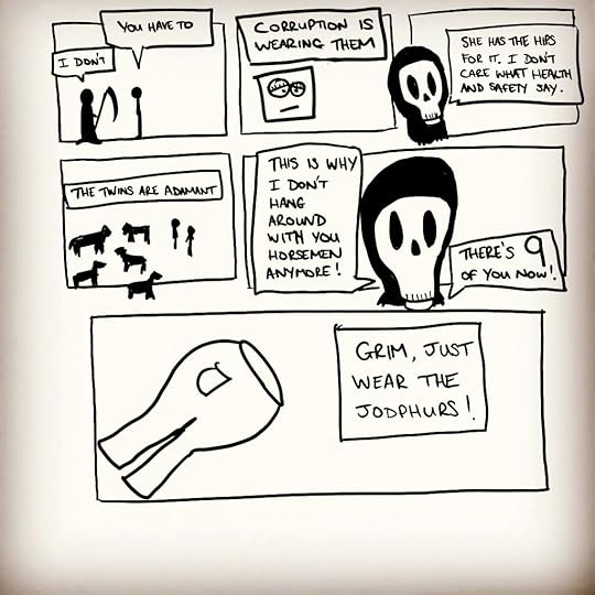 “Grim. A seven-foot skeleton carrying a scythe is not motivational. You’re a terrible life coach.”